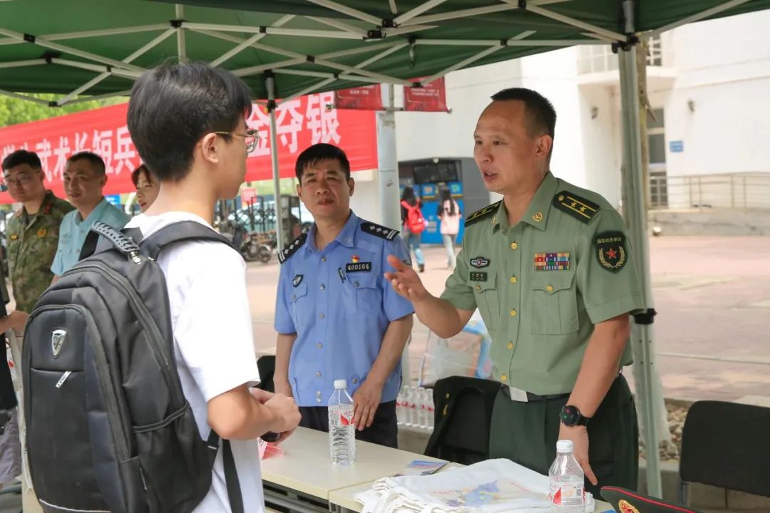 为深入贯彻落实党的二十大精神,贯彻落实习近平强军思想和习近平总书记关于加强和改进兵役工作的重要指示精神,充分发挥高等学校大学生征兵主阵地作用,为部队输送更多高素质优质兵员,加快促进best365征兵工作提质增效,6月5日,学校联合北辰区人武部、公安北辰分局、北辰医院共同举办了“征兵宣传月”政策宣讲答疑活动。北辰区委常委、区人武部政委袁茂盛,校党委书记夏静波、党委副书记李旭莅临现场指导工作。
