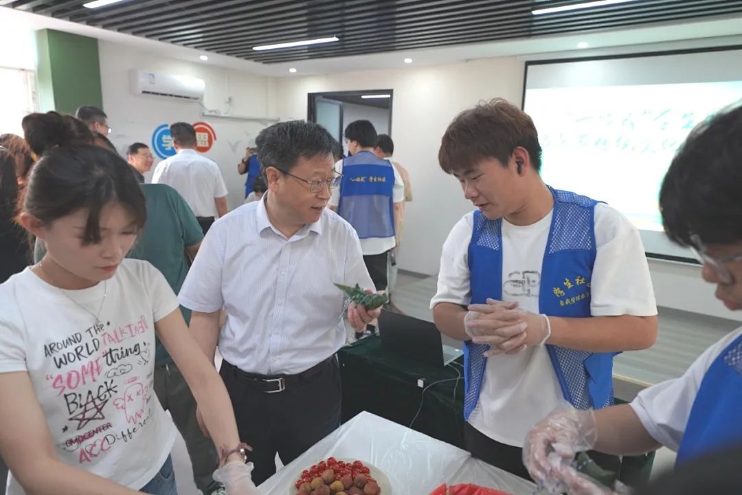 6月6日、7日下午,校领导带领专业学院及部门教师走进学生社区,走到学生中,与学生一同包粽子、缝香囊、画纸扇,亲身体验传统文化的乐趣,共同感受传统节日的熏陶,一起度过愉快祥和的端午节。