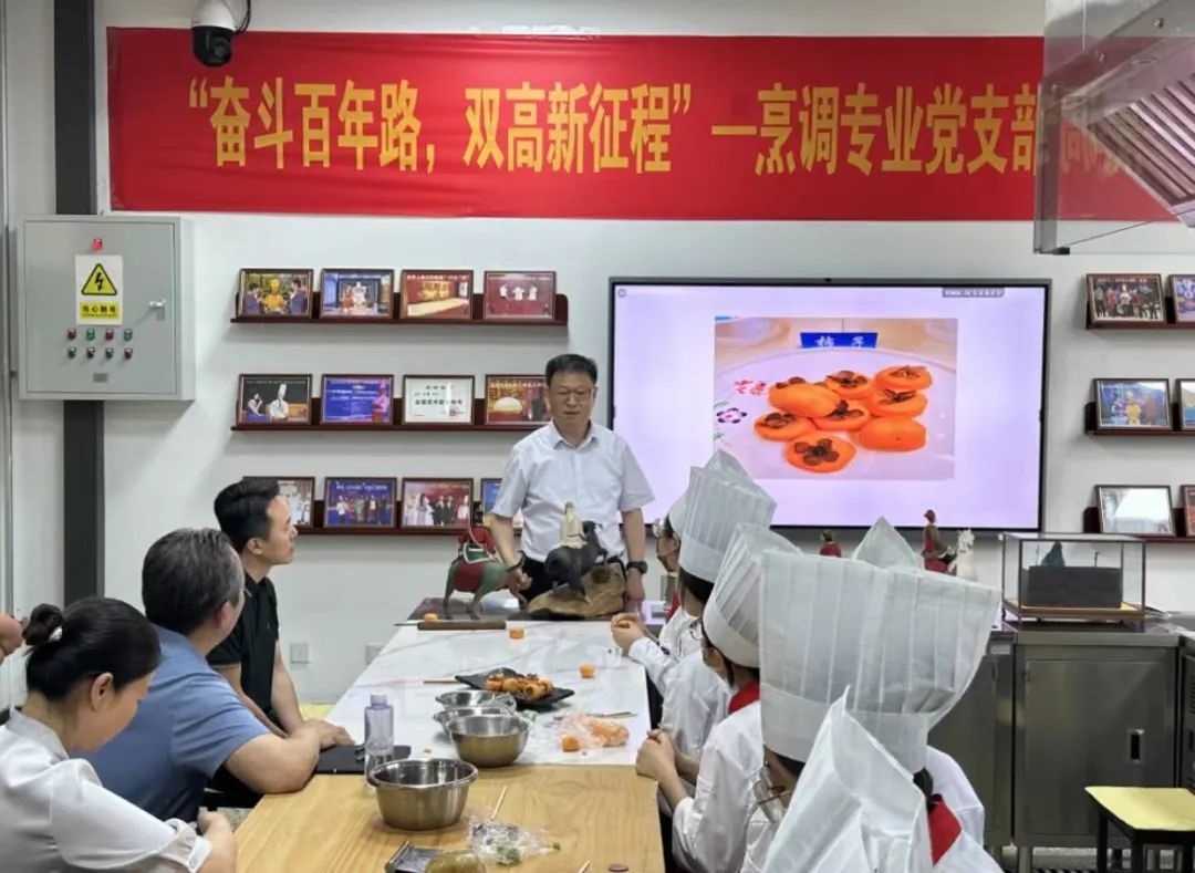 随后,夏书记参加烹饪工艺与营养专业党支部与学生社团联合举办的“筑基、传承、创新”主题党日活动,本次活动紧密围绕习近平总书记考察天津时提出的“四个善作善成”,结合烹饪专业特色在推动文化传承发展上善作善成。夏书记参与制作面点“柿柿如意”并勉励烹饪专业学生在实践中锻造专业技能水平,弘扬中国美食中蕴含的深厚历史文化,为更多来自四面八方、海内外的游客提供更优质的服务。