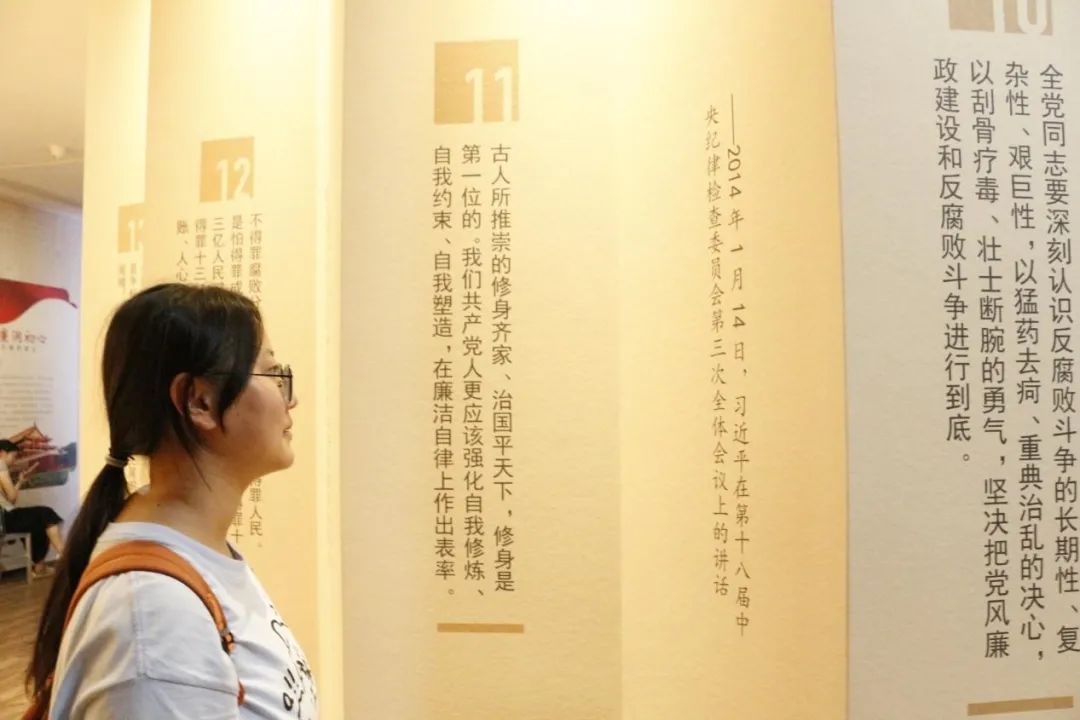 “廉润初心”主题展览整体以“廉”为主题,以“初心”为主线,打造了“执鉴之道,御今之有——中国古代廉政制度文化”、“思以正节,教以养廉——中国古代廉政思想文化”、“君子如玉,温润而泽——中国古代廉政行为文化”、“承古启今,廉润初心——中国近现代廉政文化”四个主题展览,内容丰富、形式多样。