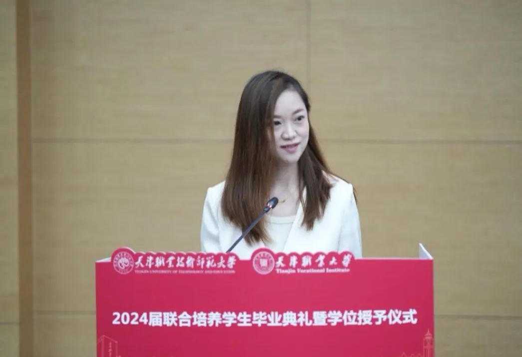 天津市“师德先进个人”、天津市“优秀教师”、天津市“三八红旗手”、天津市“最美女教师”,机电工程与自动化学院张容老师作为教师代表寄语同学们要精益求精,做工作中的担当者;乐于奉献,做社会中的发光者;志存高远,做生活中的奋斗者。