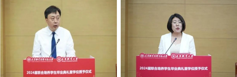 机电工程与自动化学院党委书记司炜代表学校对全体联合培养毕业生顺利完成学业表示热烈的祝贺,并对毕业生们寄语三个期望:一是希望同学们心怀匠心;二是希望同学们锤炼技能;三是希望同学们善作善成。