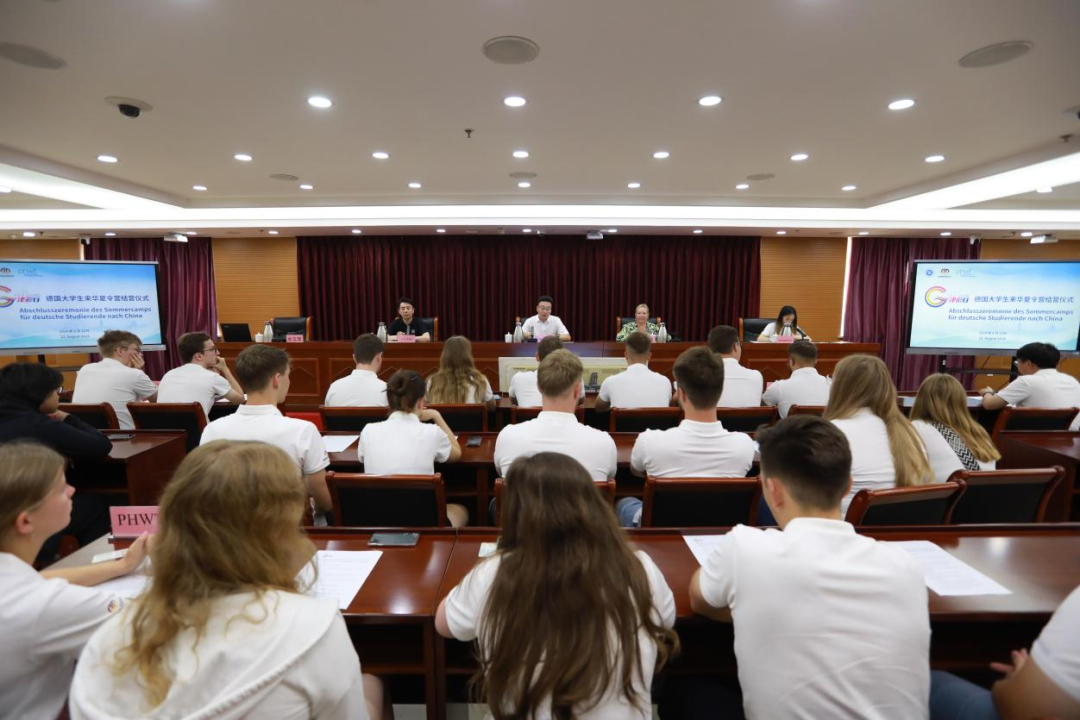 PHWT学生代表慕瑟夫发言,他说这次夏令营是一次难得的文化之旅和学习之旅,不仅学到了很多关于中国的知识,更深刻体会到了中国人民的热情好客和勤劳智慧。他将把这段宝贵的经历带回德国,与更多的人分享,为中德友谊的持续发展贡献自己的力量。