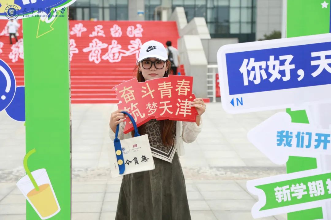 “你好,天职大”“我们开学啦”“新学期拍了拍我”“乘风破浪。梦想起航”……学校的每一个角落都充满了欢迎的气息。