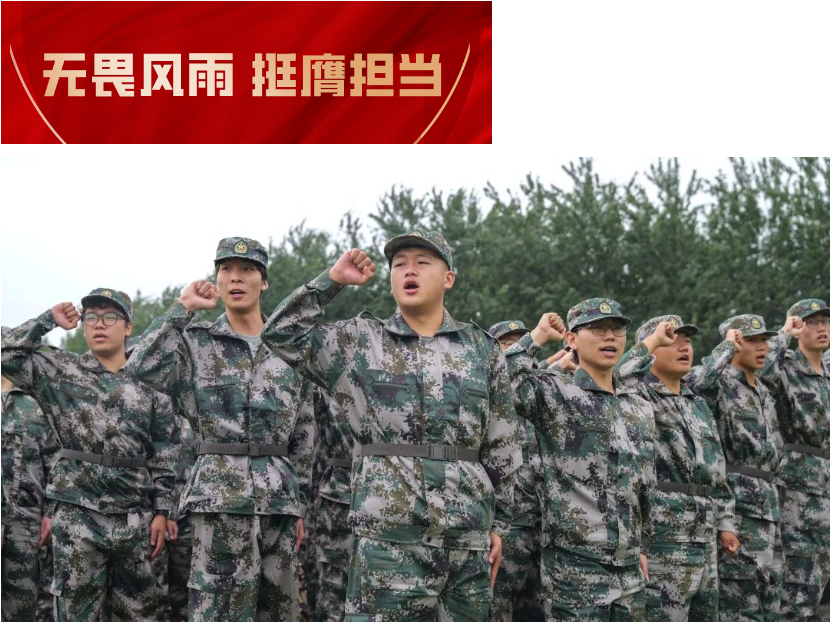 承训单位教官代表崔云昊战士就即将开始的军训鼓励新生要将国防之重牢记于心,要敢拼敢闯、善作善成,要面对挑战永不言弃,与教官们共同努力,克服困难,为大学生涯的开端交上一份满意的答卷!