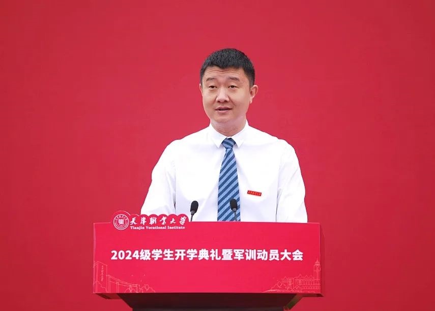 校党委副书记、校长吴宗保老师代表全校师生员工,向全体新生表示诚挚的祝贺和热烈的欢迎。他用“如何做一名新天职人”,引导同学们去直面大学生涯,用智慧去感悟,用行动去探索,用毅力去坚守,用成绩去守护“天职人”的自豪和骄傲,希望同学们明确成才目标、掌握高强本领、锤炼坚强意志,踔厉奋发,勇毅前行,用青春热血投身技能报国的伟大实践。
