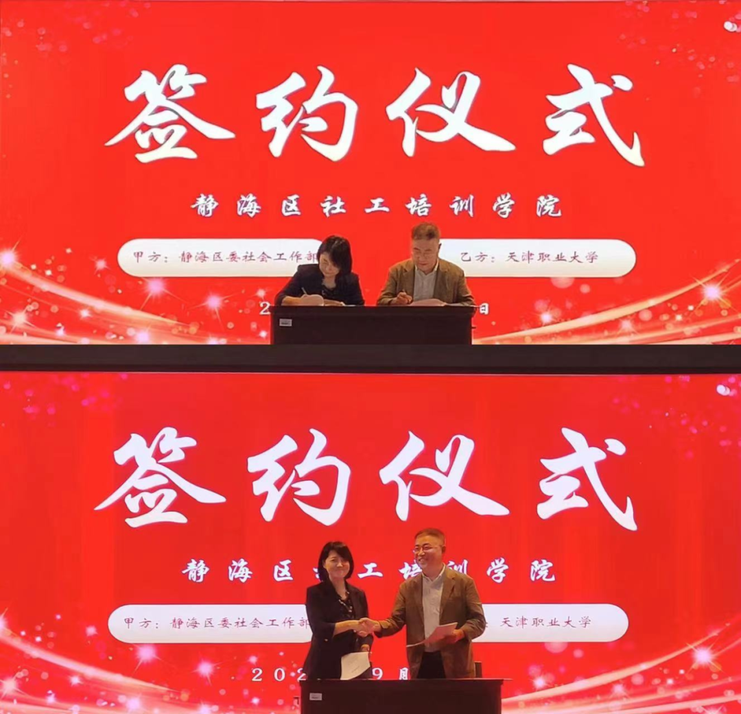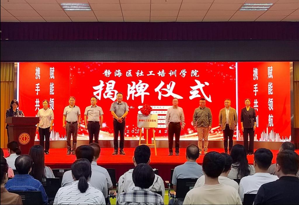 为深入学习贯彻习近平总书记关于基层治理的重要论述和视察天津重要讲话精神,探索社会培训模式,服务社会发展,公共管理学院与天津市静海区委社会工作部合作共建静海区社工培训学院暨best365英国在线体育官网静海社工实训基地。
