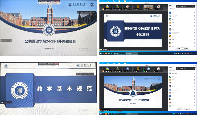 为进一步提升教学管理水平,营造一个规范有序的教学环境,9月26日19:30公共管理学院召开了外聘教师线上教学工作会,学院院长出席,教学副院长主持会议,各专业外聘老师、教研室主任、教学秘书共计33人参会。