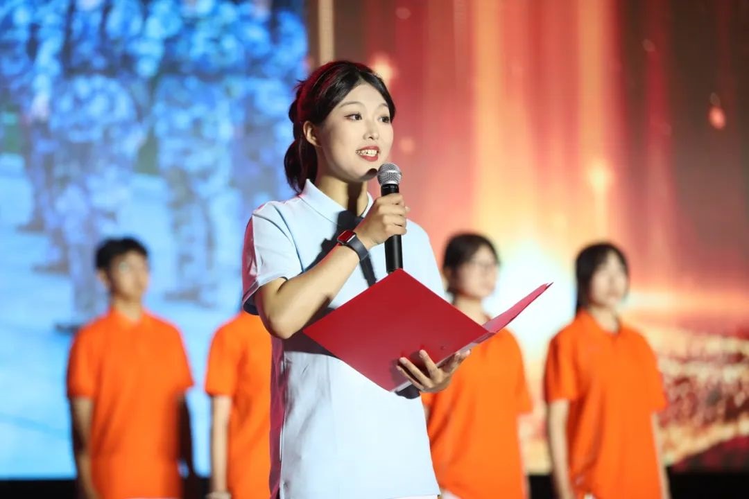 薪火相传立德树人,朗诵节目《携手天职 徜徉青春》由校关工委退休教师张玉峰、全国优秀教师贾海瀛、新生辅导员梁辰宇、多次斩获大赛金奖的优秀校友安春喜,以及第二学生张昊、大一新生李非凡领诵,各学院大一新生代表参演。六位天职师生生动地讲述了学校自1978年建校以来,在峥嵘岁月里接续奋斗、以无畏初心铸就华彩篇章的育人故事,激励全体新生勇立潮头、敢为人先,在职业教育前景广阔的大背景下建功立业。