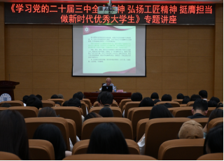 本次讲座以“学习党的二十届三中全会精神 弘扬工匠精神 挺膺担当 做新时代优秀大学生”为题,围绕学习《中共中央关于进一步全面深化改革、推进中国式现代化的决定》,认真贯彻党的二十届三中全会精神;庆祝中华人民共和国成立75周年,厚植爱国情怀;强化认识,弘扬劳模精神、劳动精神、工匠精神;挺膺担当,努力做新时代优秀大学生等四个方面为参会师生进行讲授。史国有老师用接地气的话语把党的创新理论讲给师生听,推动党的二十届三中全会精神深入人心。同时,阐述了新中国75年间从“一穷二白的旧中国”到“世界第二经济大国”发生的翻天覆地的变化,以及青年革命先烈的英雄事迹和神舟等科技团队的先进事迹,使参会师生倍感珍惜当下的幸福生活。史老师鼓励参会学生做好职业生涯规划,修一颗匠心、做一个匠人,秉持初心匠心,努力掌握精湛的技术技能,在自己的岗位上追求卓越,立志为绽放职业教育的魅力和价值贡献青春力量。