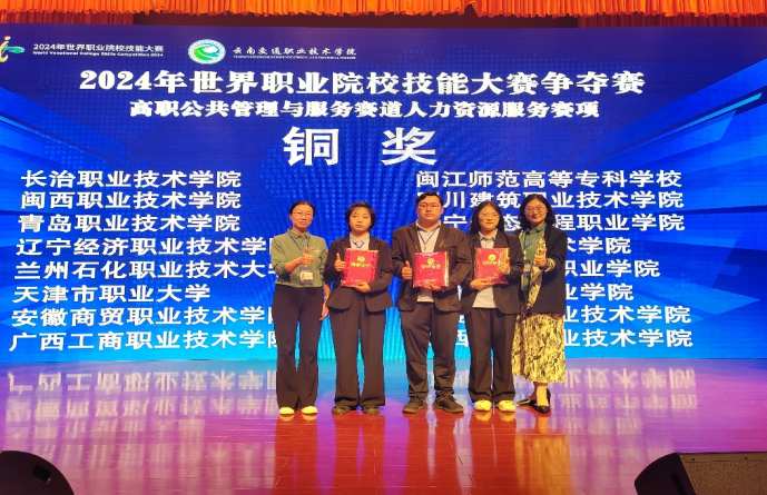 2024年10月25日—27日,2024年世界职业院校技能大赛争夺赛高职公共管理与服务赛道人力资源服务赛项在云南交通职业技术学院举行,来自全国各省、自治区、直辖市的高职院校共58支代表队参加。经过为期2天的激烈角逐,best365公共管理学院人力资源管理专业宋浩杰、汤明雪、陈自慧三位同学组成的竞赛团队荣获本次大赛铜奖。