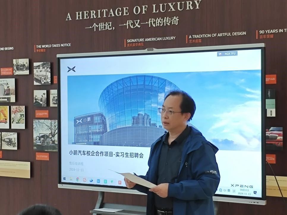 活动分为两个主要环节:启动会和面试环节。在启动会上,双方领导分别致辞,强调了此次合作的重要性和对学生未来职业发展的重大意义。校方代表汽车工程学院院长李海斌教授率先讲话,李海斌院长对小鹏汽车与学校的合作表示了诚挚的感谢,并对参与双选会的学生们寄予厚望。李海斌院长提到,小鹏汽车首届订单班是学校根据汽车行业发展趋势和企业实际需求而精心打造的培养高技能人才的重要实践。同学们可以在实践中学习,在实践中成长,具备更真实的实际岗位操作能力,更好地适应未来汽车行业的快速变化,积极做一名未来出行生活的探索者。
