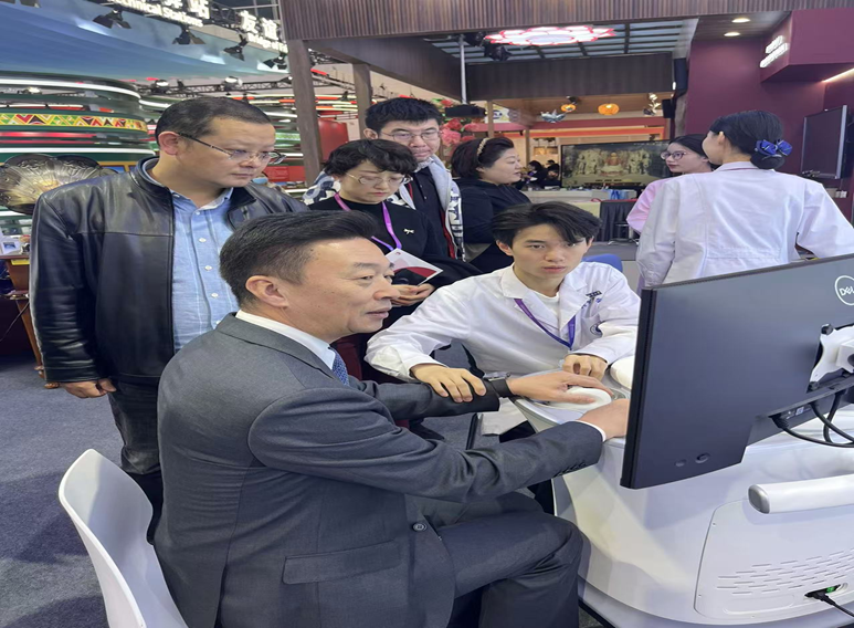 公共管理学院数智赋能智慧康养人才培养展位亮相世界职业技术教育发展大会专题展引发关注。学院通过图文并茂的形式充分展现了办学经验和成果,同时现场为大家展示婴儿和老年人护理的数字化应,吸引众多参展人员围观、了解。向世界展现职业教育服务区域发展与产业创新的成果成效。