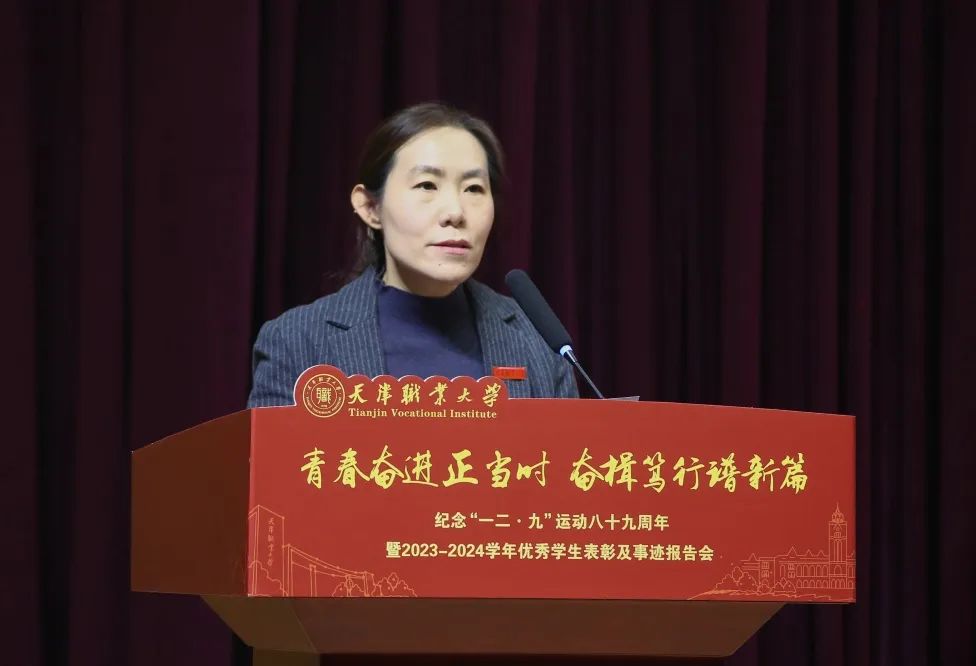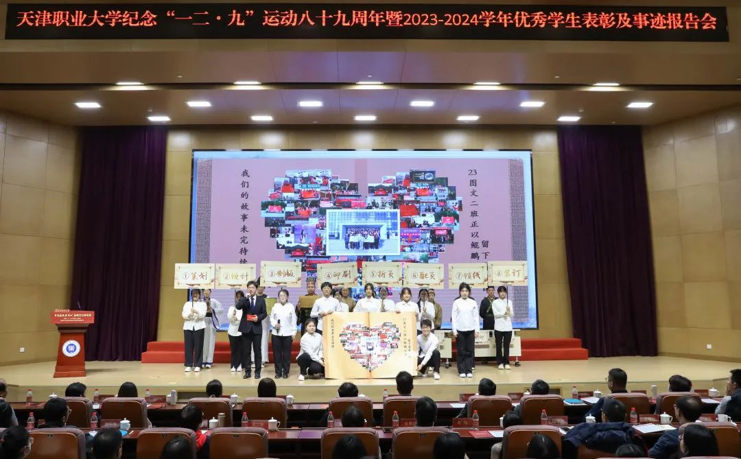 天津市青年讲师宣讲团成员,天津市十佳辅导员获得者张子健老师以及学生代表带来精彩微宣讲—《跨越时间的传承》,回顾了发生在89年前掀起全国抗日救国新高潮的“一二·九”运动;89年后的今天,号召每一位天职学子铭记历史,将自身所学融入强国建设新征程之中,做新时代有责任担当的工匠人才。
