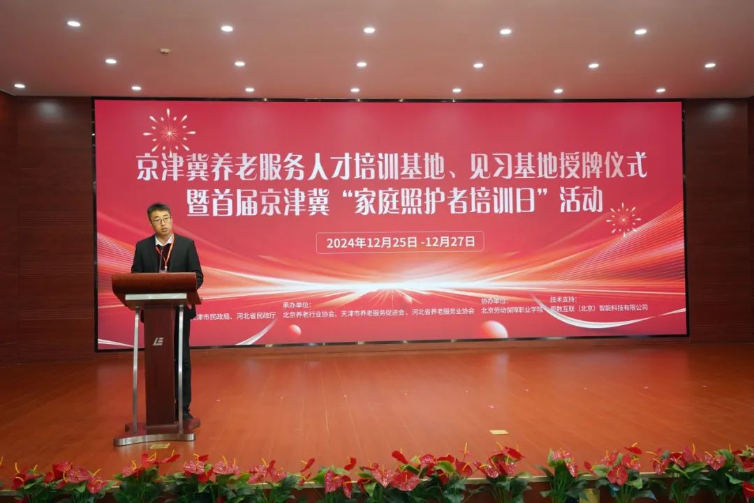 为深入推动京津冀养老服务人才协同发展,进一步强化三地养老服务人才支撑,2024年12月25日,由北京市民政局、天津市民政局、河北省民政厅指导的京津冀养老服务人才培训基地、见习基地揭牌仪式暨首届“家庭照护者培训日”活动在北京劳动保障职业学院举办。best365作为首批京津冀养老服务人才培训基地获得授牌,并作为院校代表在大会上做养老服务人才培训的经验分享。