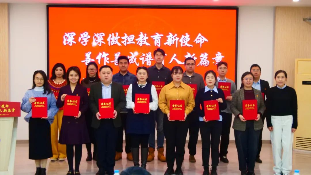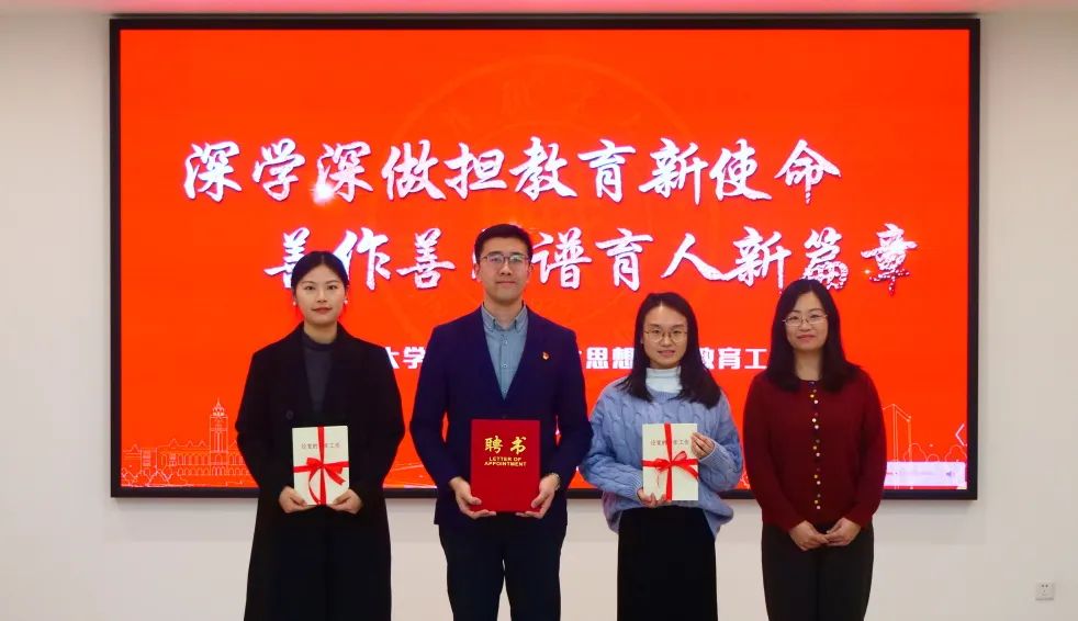 学工部副部长为新入职辅导员赠书,向辅导员成长导师颁发聘书。