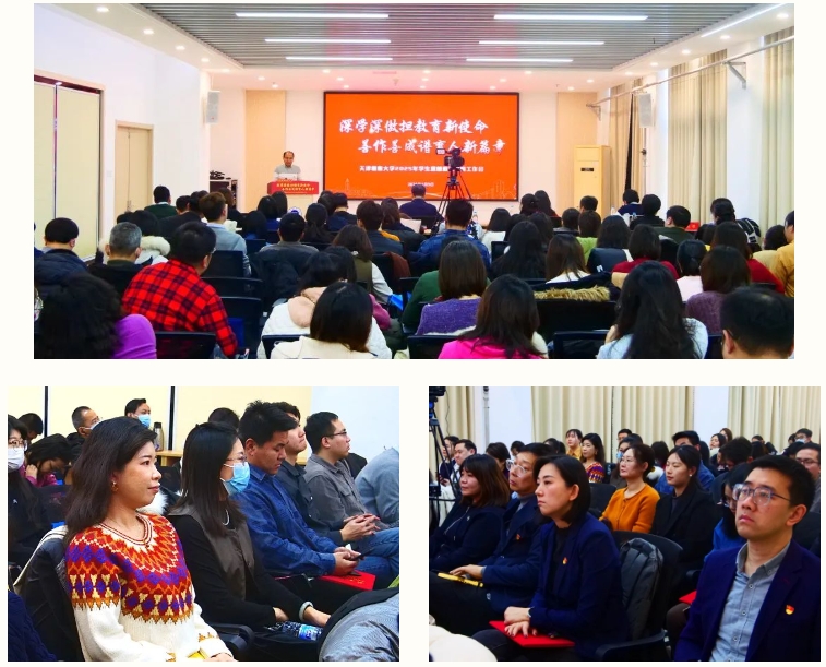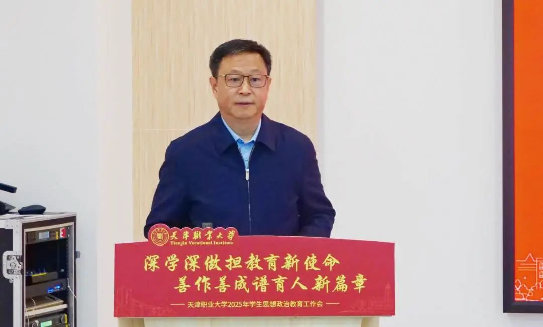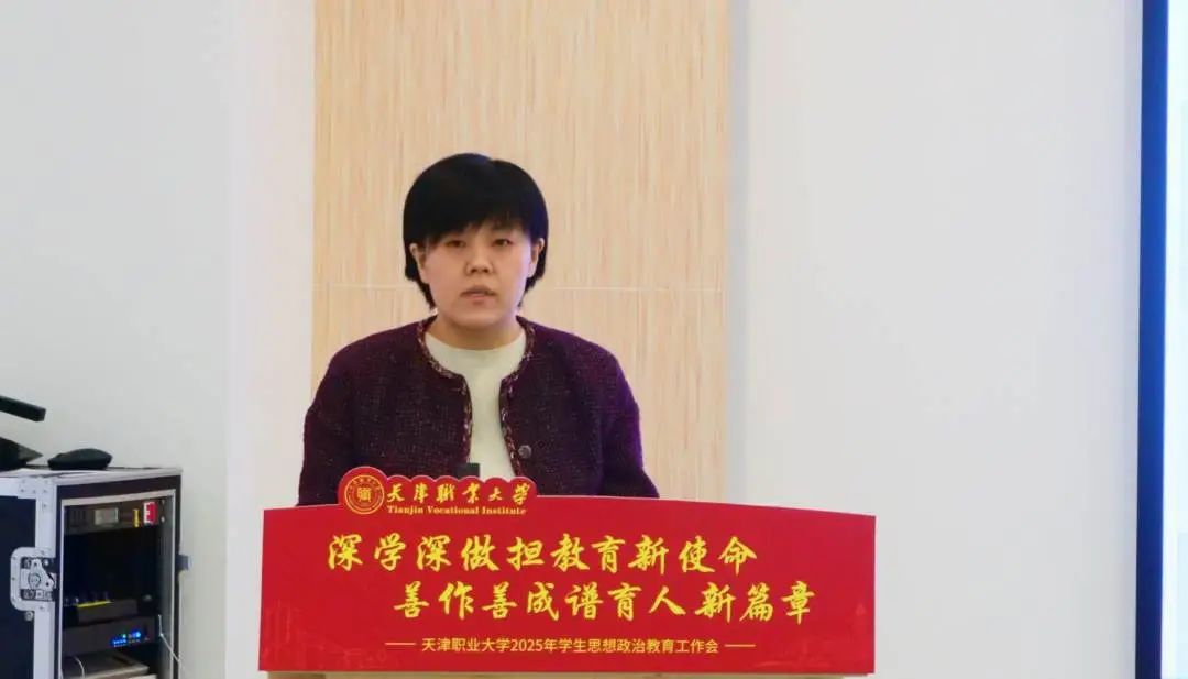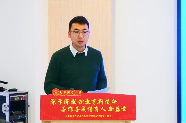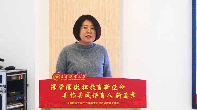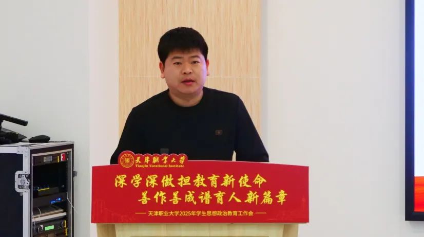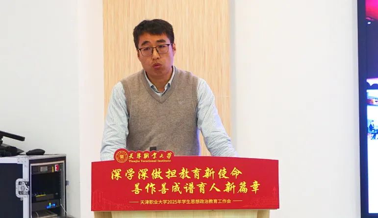 为全面贯彻落实党的二十大和二十届二中、三中全会精神,深学深用习近平总书记在全国教育大会上的重要讲话精神,总结2024年工作经验,进一步推进学生思想政治教育工作高质量发展,1月9日,2025年学生思想政治教育工作会在北辰校区未来工匠服务发展中心308会议室召开,校党委书记夏静波出席会议,各专业学院党委副书记、全体辅导员,学工部、团委全体干部100余人参加会议。