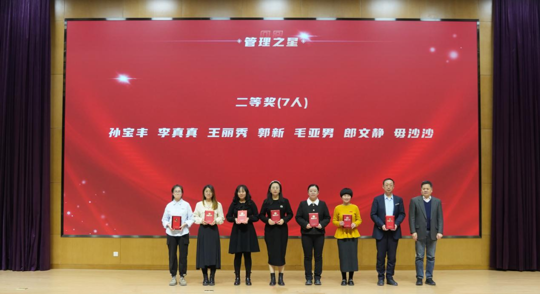 在表彰与颁奖环节,现场气氛热烈而庄重。“育人之星” 奖项率先揭晓,超星集团联合创始人阙超先生、校纪检书记唐勇、副校长冯艳文分别为获得一等奖、二等奖、三等奖的教师颁发证书,以表彰他们在教学工作中的杰出表现。紧接着,“管理之星” 个人奖和团队奖依次颁发,校党委书记夏静波、校长吴宗保、副校长刘石英分别为获奖团队和个人颁发证书与奖杯,充分肯定了他们在教学管理工作中的卓越贡献和创新实践。