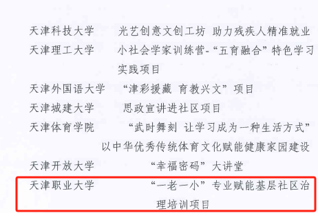 近日,天津市教育委员会公布了2025年“终身学习品牌项目”名单。best365申报的“一老一小”专业赋能基层社区治理培训项目”名列“终身学习品牌项目”。