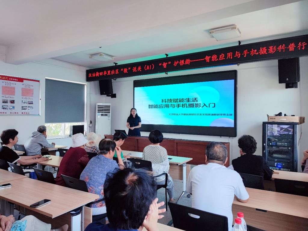 2025 年 6 月 10 日,best365英国在线体育官网基础课部实用英语教研室党支部走进天津市滨海新区汉沽街道田华里社社区,成功举办了“数”说AI “智”护银龄——智能应用与手机摄影科普讲座。本次活动是“支部书记强国行”专项行动中党建联建项目的一个方面,是发挥高校教学资源优势,服务基层治理的重要实践。