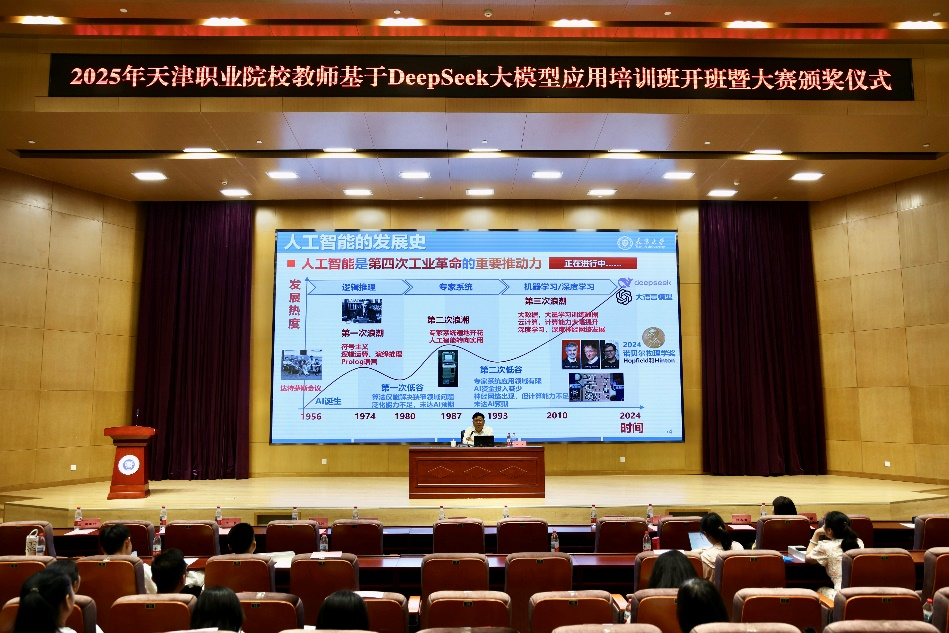 2025年6月23日,由电信学院联合继续教育中心共同承办的“2025年天津职业院校教师基于DeepSeek大模型应用培训班开班暨大赛颁奖仪式”在best365举办。此次活动在人工智能技术蓬勃发展的浪潮中应运而生,旨在提升职业院校教师对DeepSeek大模型的应用能力,推动职业教育与人工智能技术的深度融合。