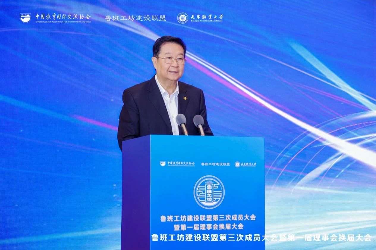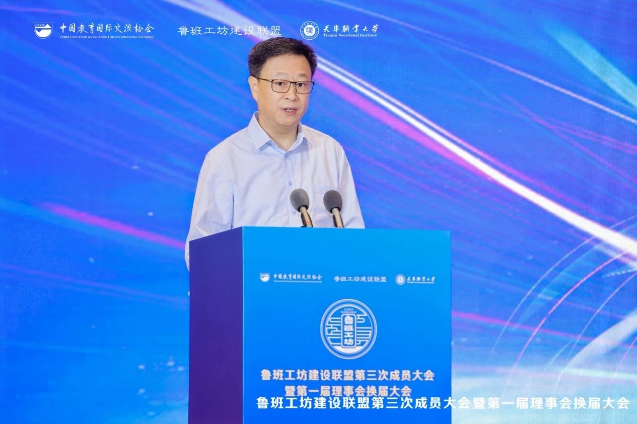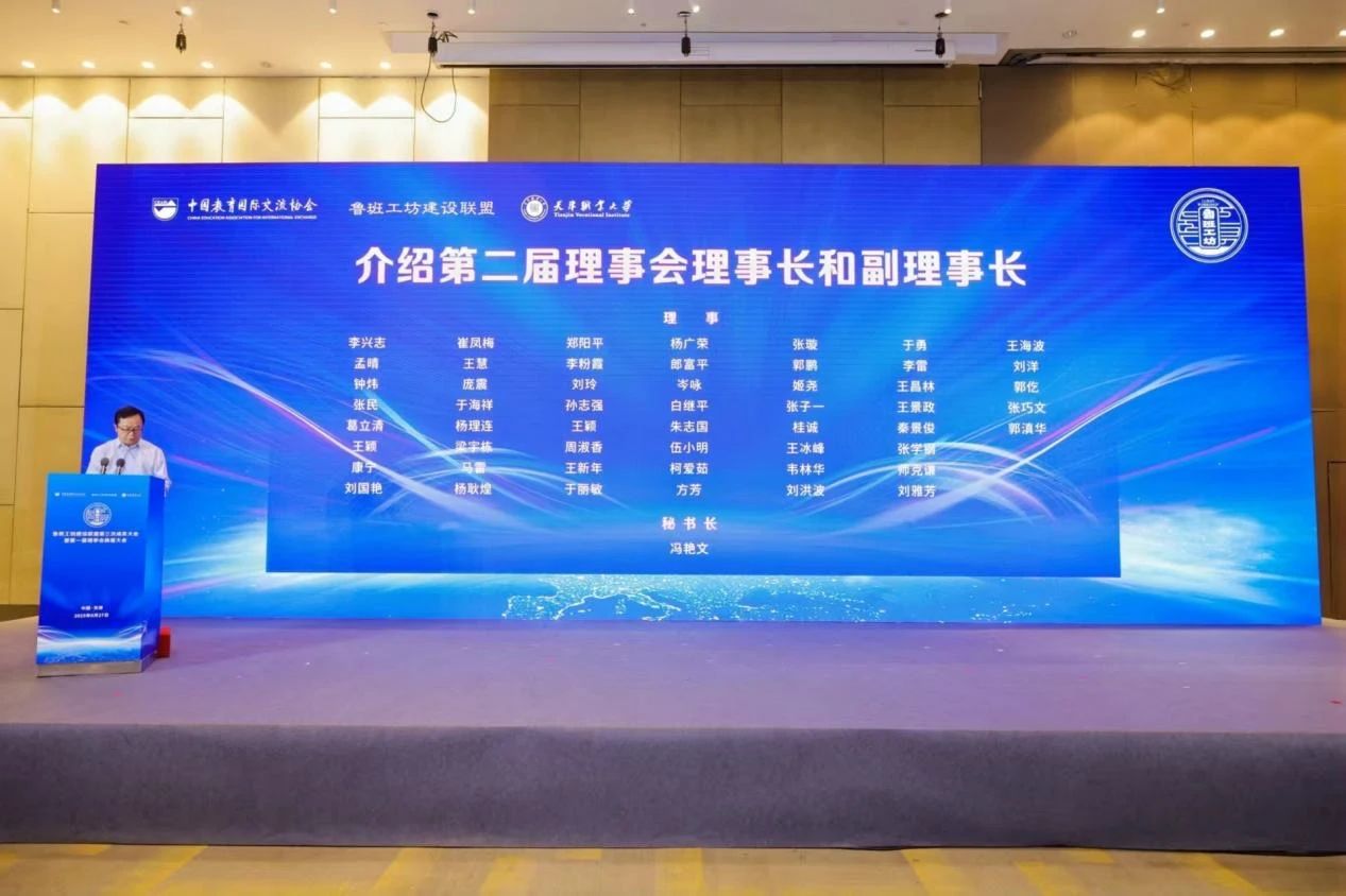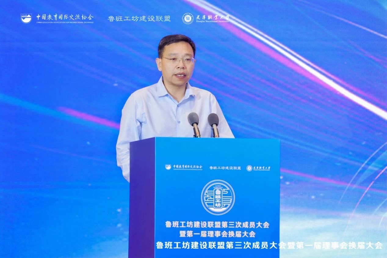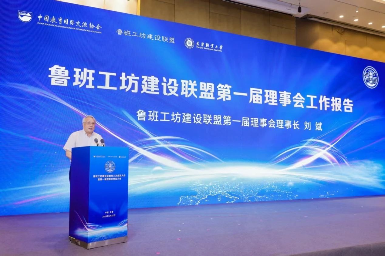 鲁班工坊建设联盟第一届理事会理事长刘斌代表联盟第一届理事会作联盟第一届理事会工作报告。