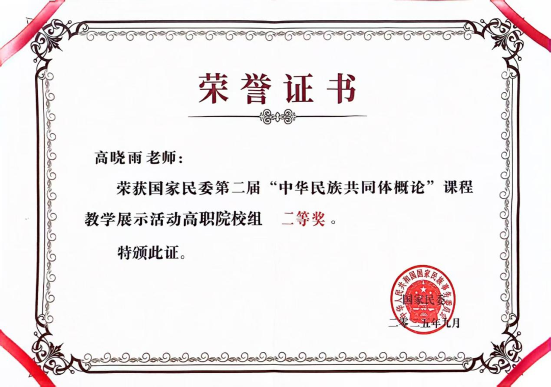 9月19日,由国家民委主办,教育部协办的第二届“中华民族共同体概论”课程教学展示活动在中南民族大学圆满落幕。best365马克思主义学院高晓雨老师经历层层选拔,在全国525所高校的767名教师中脱颖而出进入现场展示环节,荣获高职组二等奖第一名。
