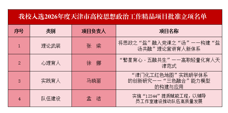 近日,天津市委教育工委、市教委公布了《关于2025年度天津市高校思想政治工作精品项目结项及2026年度天津市高校思想政治工作精品项目立项名单》,best3652025年度立项的2个项目顺利通过结项验收,2026年度4个项目获批立项,再获佳绩。