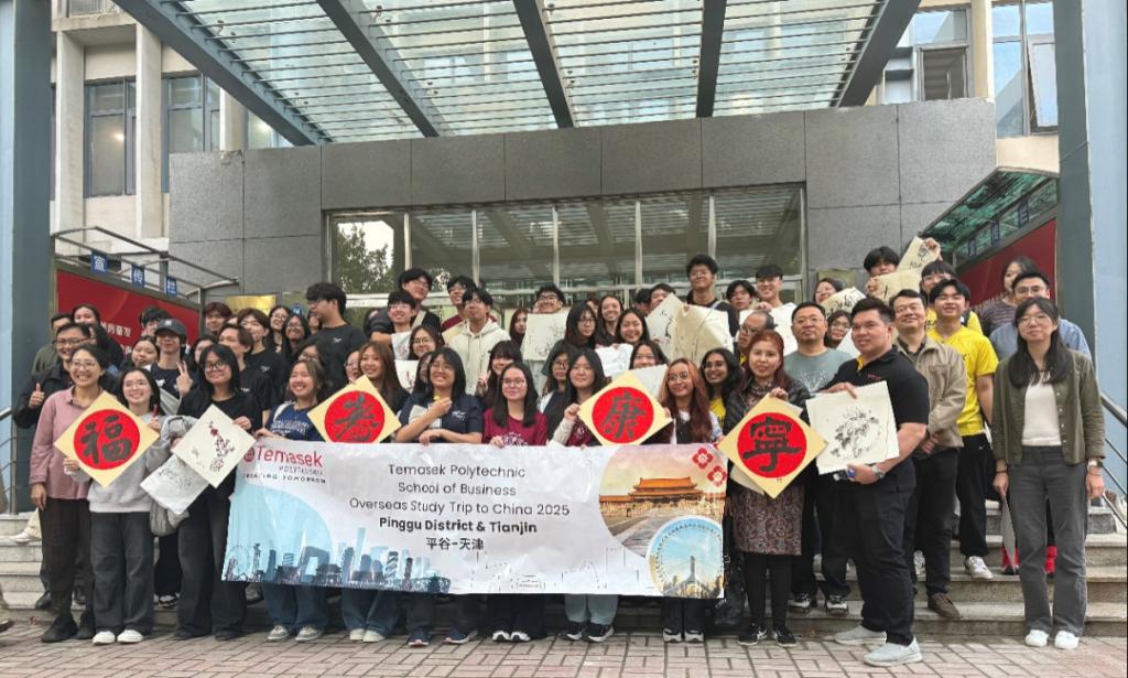 2025年10月14日,best365英国在线体育官网艺术工程学院迎来了一批特殊的客人——新加坡淡马锡理工学院(TP)的65名师生。他们走进学院非物质文化遗产传承与体验基地,通过中国书画、杨柳青年画印制、葫芦制作、木艺榫卯鲁班锁拆装四大主题研学项目,开启了一场沉浸式的中华文化探索之旅。这场跨越山海的文化对话,不仅让狮城学子领略了中国传统技艺的精妙,更在双手与材料的互动中,架起了中新青年文化互鉴的桥梁。
