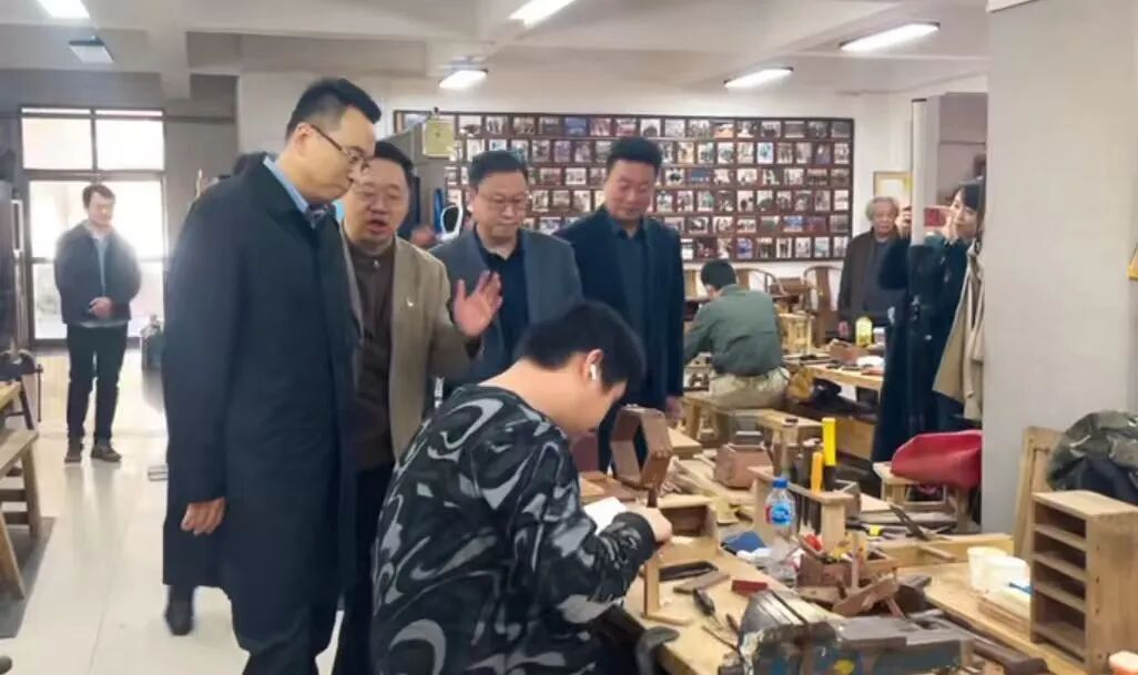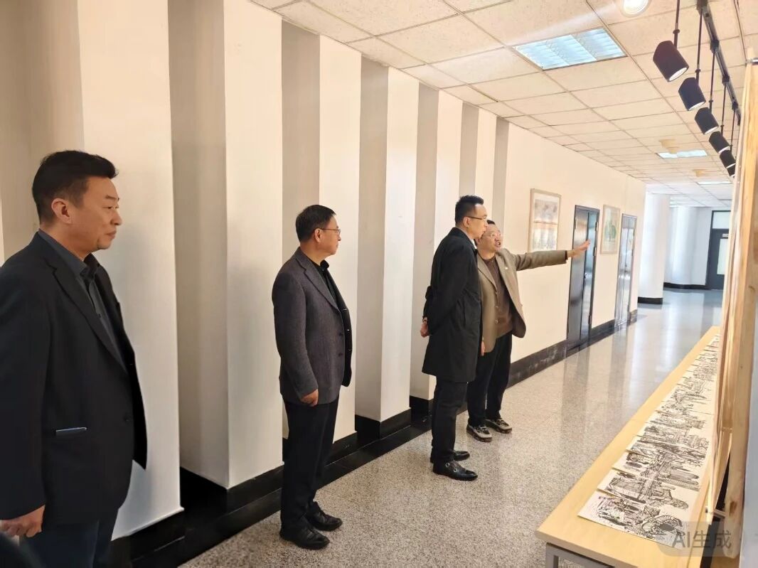 楼外,冬日暖阳温柔拥抱校园;楼内,丰富的优秀传统文化元素不断散发出迷人气息。于鹏洲副秘书长一行走进艺术工程学院,在学院负责人的引领下,观看了学院师生共同创作的大型版画作品《海河文韵图》,并依次调研了木艺榫卯、杨柳青木版年画、葫芦技艺、陶艺等非遗大师工作室,详细了解了学院“4 + 2 + 1”非遗项目建设情况,听取了学院以非遗为内容构建起的“课程为基、项目赋能、平台支撑”的育人思路汇报,了解了学院依托现有项目开展中小学研学活动、非遗传承人培训工作的情况,现场感受了非遗项目数字化建设成果。