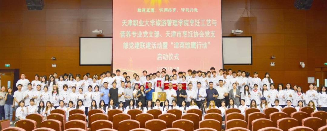为深入推进校企协同育人,促进津菜技艺传承与创新,2025年5月28日,烹饪工艺与营养专业党支部与天津市烹饪协会党支部联合举办“联建互通,协同共育,津彩共赴”主题党日活动,并隆重启动“津菜雏鹰行动”。校党委书记夏静波、天津市烹饪协会党支部书记孔令涛、知名餐饮品牌负责人、学院领导及专业师生共同参与并见证荣光时刻。