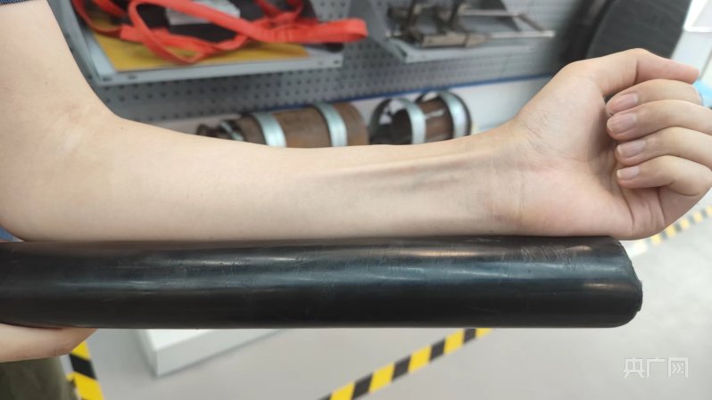 如成年人小臂粗的铜芯电缆,张华的徒弟一天要锯20片(央广网记者 韩雨晨 摄)