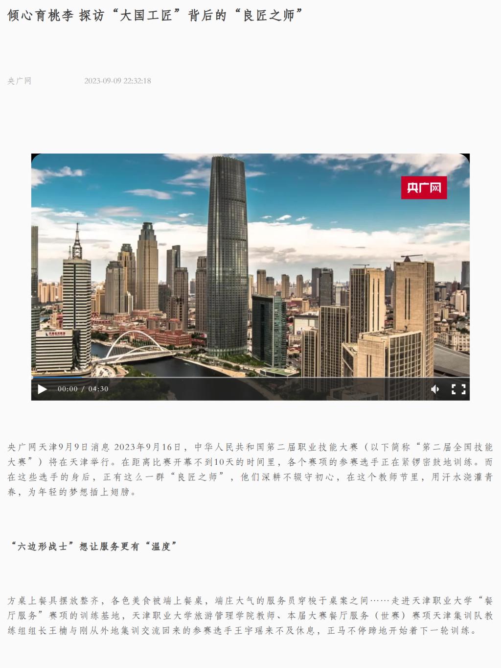未来,天津市将继续巩固发展职教优势和特色,完善“工匠之师”培养培训等工作体系,发挥竞赛引领作用,助推技能人才培养,激励越来越多青年一代走上技能成才、技能报国之路,打造新时代职业教育的领军者和新高地。