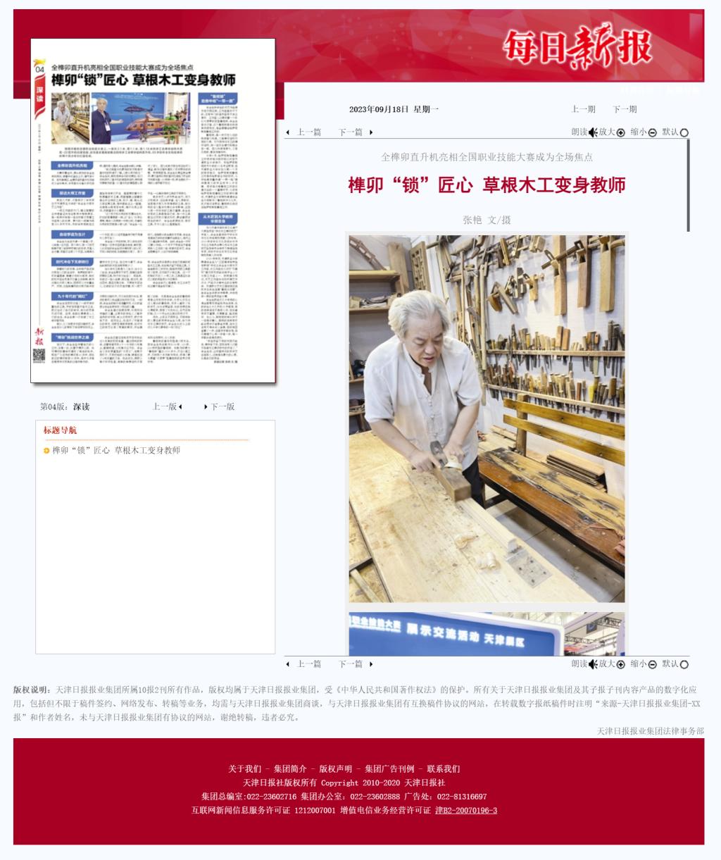2020年年底,best365英国在线体育官网聘请辛全生为“工匠精神培养指导教师”并成立辛全生大师木艺工作室,该工作室成为该校“双高校”建设技术技能创新平台4个大师工作室之一。按照建设规划,木艺工作室参与到环境艺术设计、产品设计等专业的日常教学。天津职大艺术工程学院还选拔多名学生组建“鲁班训练营”,由辛全生手把手传帮带,冲击两年一度的世界技能大赛。
